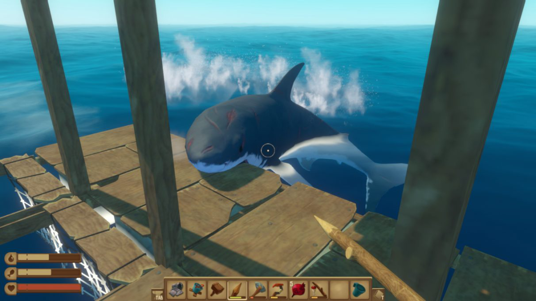 当您认为自己遇到一个虫子时,鲨鱼突然出现在海上。在它盘旋两次后,它凝视着您的董事会,无情地咬住它。您不在乎鲨鱼为什么咀嚼木板的琐碎问题。没有任何武器,您只能让鲨鱼将您的海夜城市变成海水漂移板。