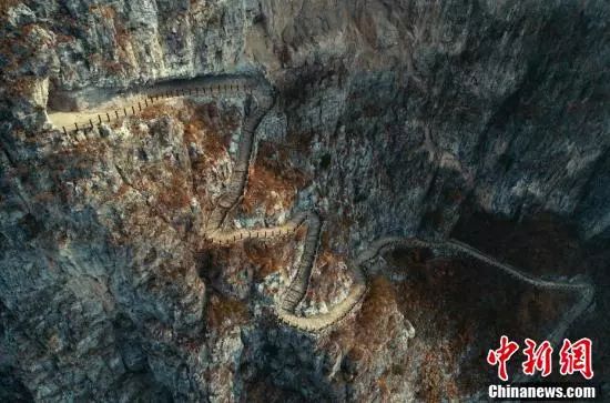 垂直高度超过1,000米,从悬崖壁上雕刻的“ Z” the子和马路。 liu inongjun摄